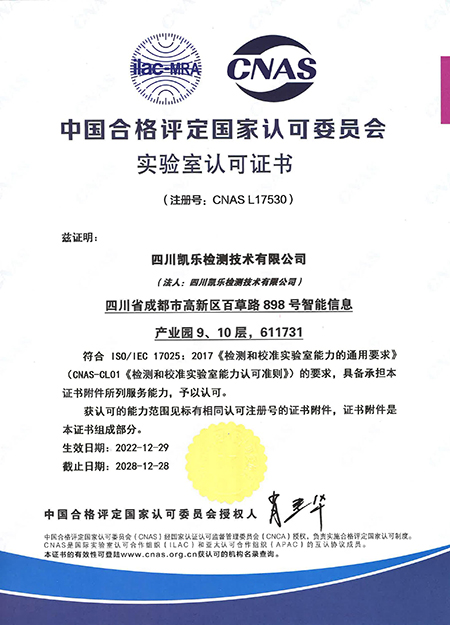 凱樂檢測認證集團具備檢驗檢測機構資質認定(CMA)、實驗室認可(CNAS)資質,目前通過CMA的包括理化綜合、重金屬、農(nóng)藥殘留有機物、獸藥殘留有機物、微生物、物理、輻射等檢測指標近4000項,涉及環(huán)境檢測領域的水和廢水、環(huán)境空氣和廢氣......
